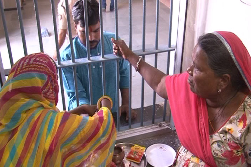 भीलवाड़ा जिला कारागार में भाई- बहन का त्यौहार रक्षाबंधन मनाया गया. बहनों ने अपने बन्दी भाइयों की कलाई पर राखी बांधकर अपनी रक्षा का वचन लिया. बहनों ने भाइयों से भविष्य में कभी अपराध नहीं करने का भी वचन लिया. जेल उपाधीक्षक नरेन्द्र कुमार स्वामी ने कहा कि कैदियों को अपनी बहनों से राखी बंधवाने के लिए विशेष तैयारियां की गई थीं. भाई- बहन को मिलने व राखी बांधने में परेशानी न हो इसके लिए भी विशेष ध्यान रखा गया था. स्वामी ने यह भी कहा कि इस दौरान बाहर से आने वाली सभी मिठाई को चेक किया जा रहा था और बहनों को राखी बांधने में कोई तकलीफ न हो, इसका भी ध्यान रखा जा रहा था.